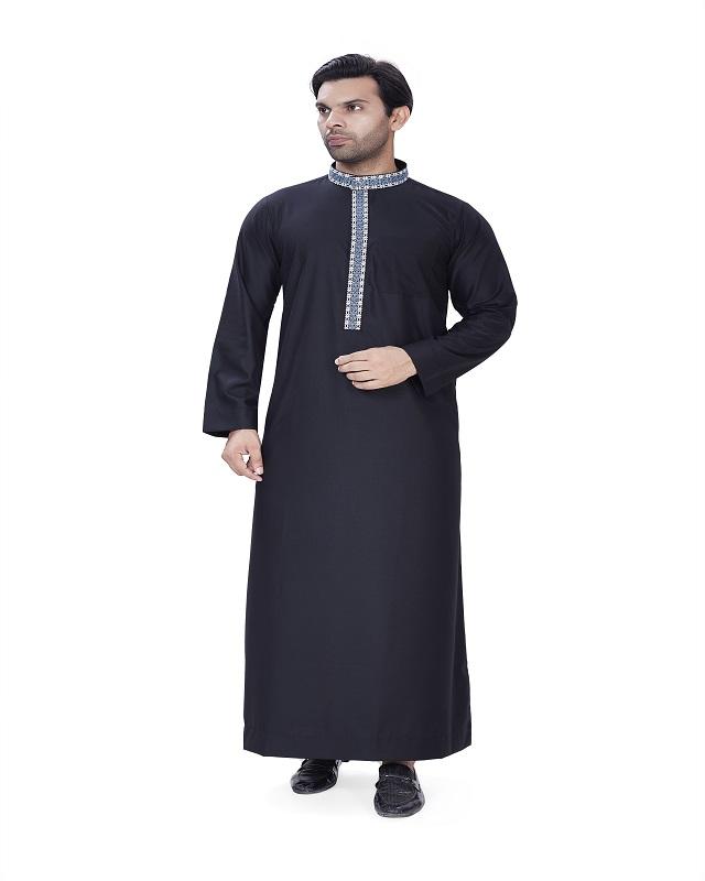 Men's Islamic Summer Robe Polyester Saudi Embroidered Thobe-Summer Long Sleeve for Men Muslim Traditional Clothing