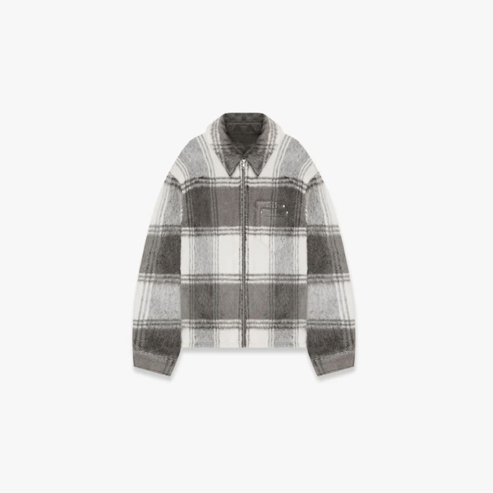 Men's Winter Jackets Flannel Shirt Jacket Grey White Dropped Shoulder Fit Double Pocket Canvas Waterproof Windproof