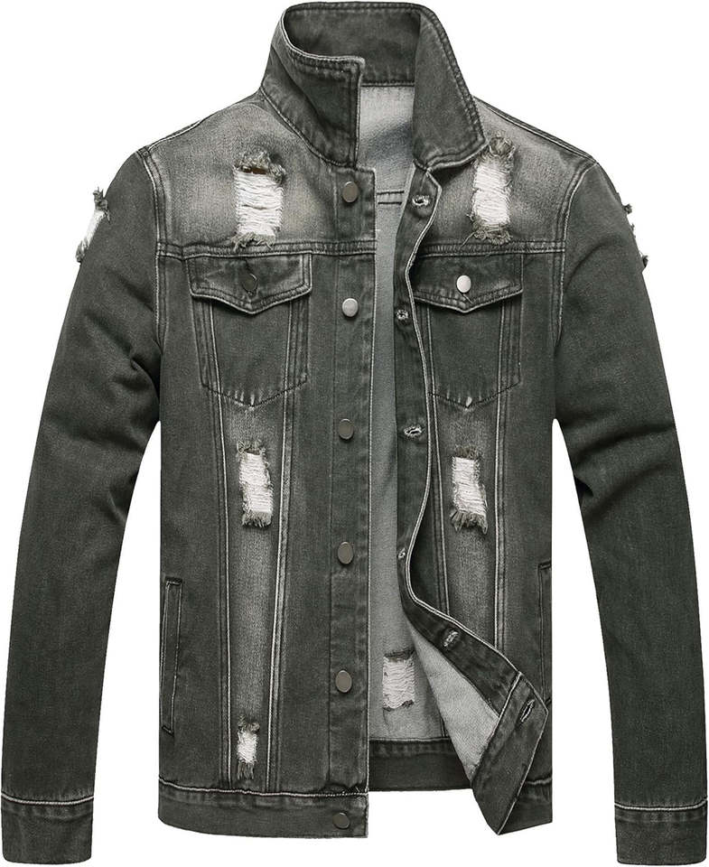 Men's Jackets Men's High-Demand Winter Casual Denim Jackets Stand Collar Windproof Fitness Top Front Solid New Trended Fabric