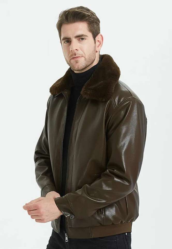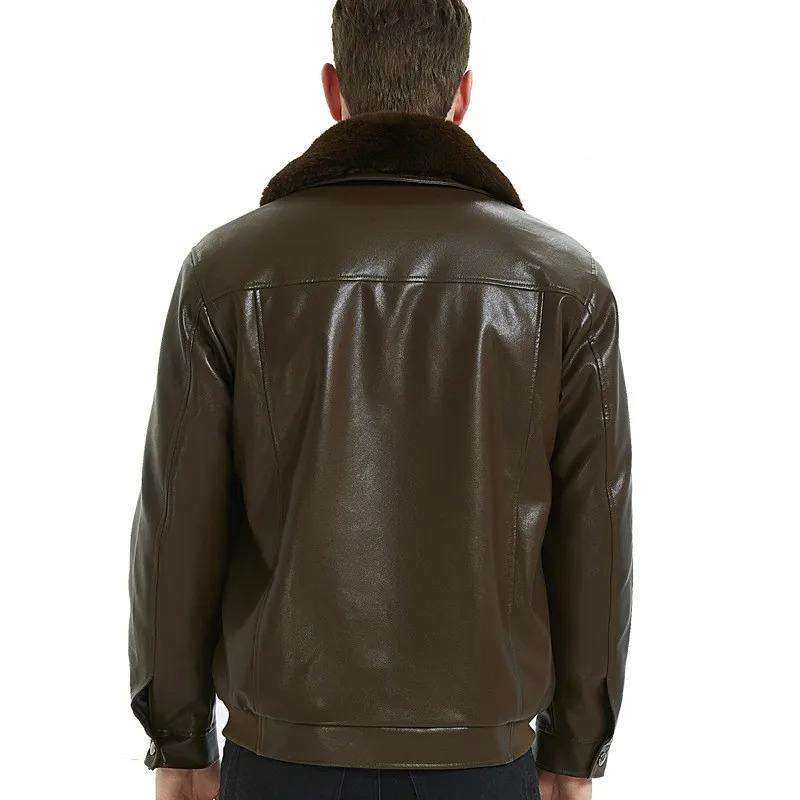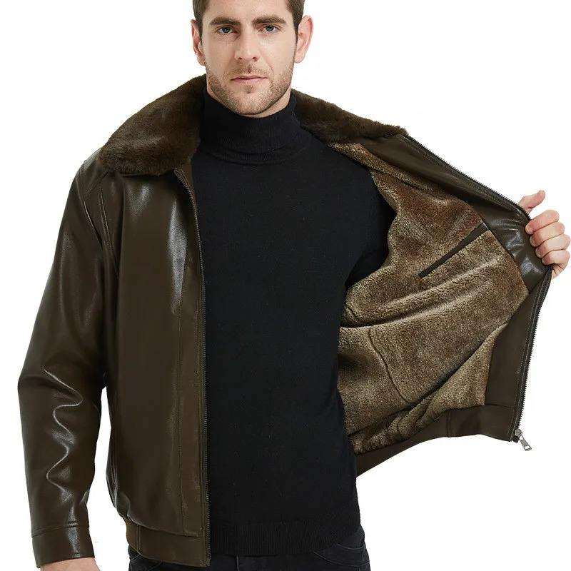 Men's Jackets Oversized Men's PU Leather Winter Jacket with Thick Fluffy Warm Faux Fur Collar Stand Collar Black Leather Coat