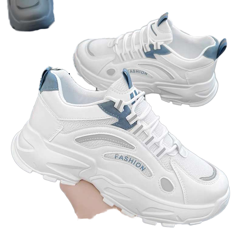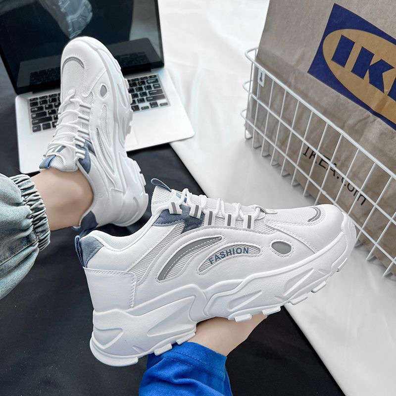 Men's Lace-Up Sneakers Spring 2025 New Casual Dad Shoes Summer Breathable Mesh Height-Increasing Running White