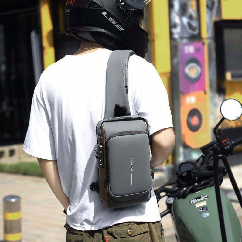 Men's Large Capacity Sports Motorcycle Bag Combination Lock Shoulder Bag Casual Day Waist Pack Small Bag Fashion