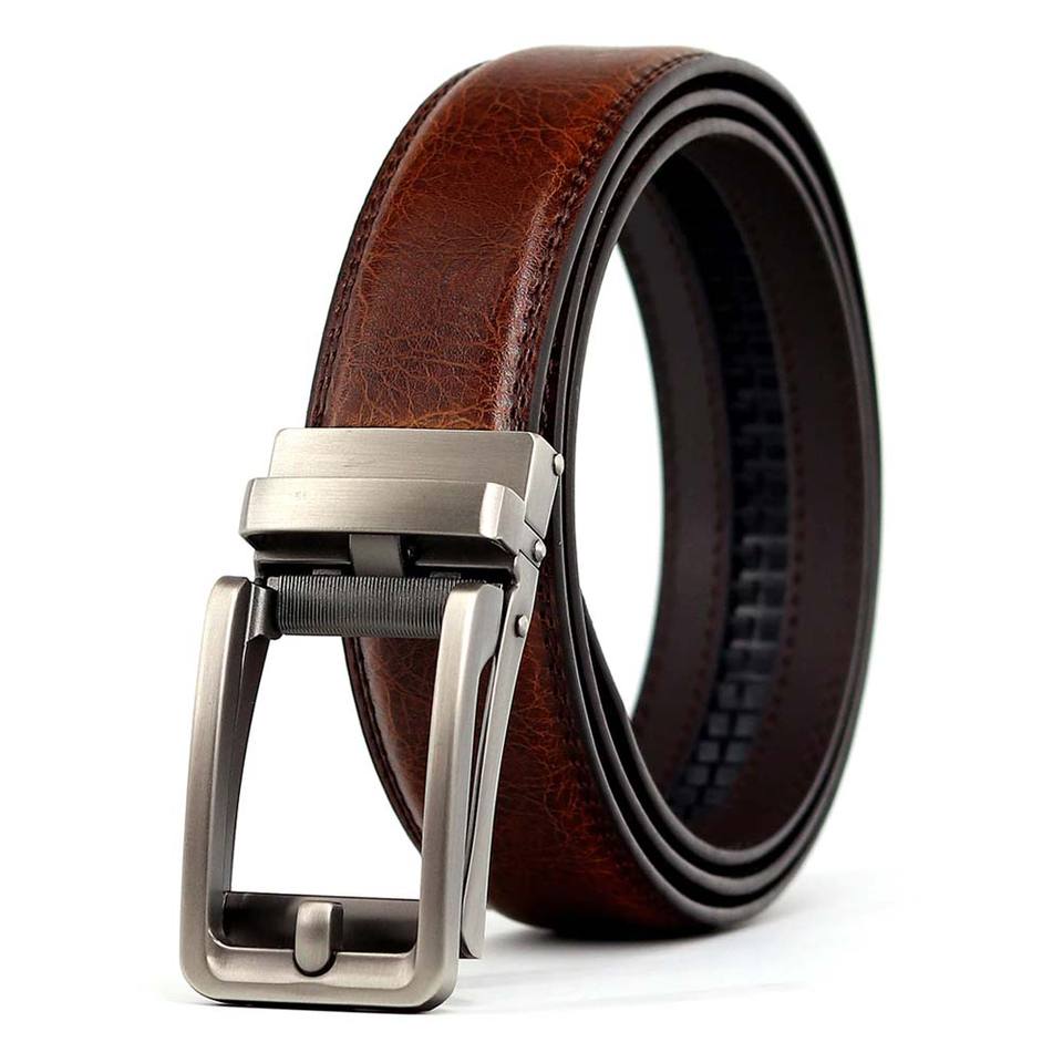 Men's Leather Belts Brown Cowhide High Quality Business Ratchet Belt Metal Automatic Buckle Waist Strap Male Formal Style Belt