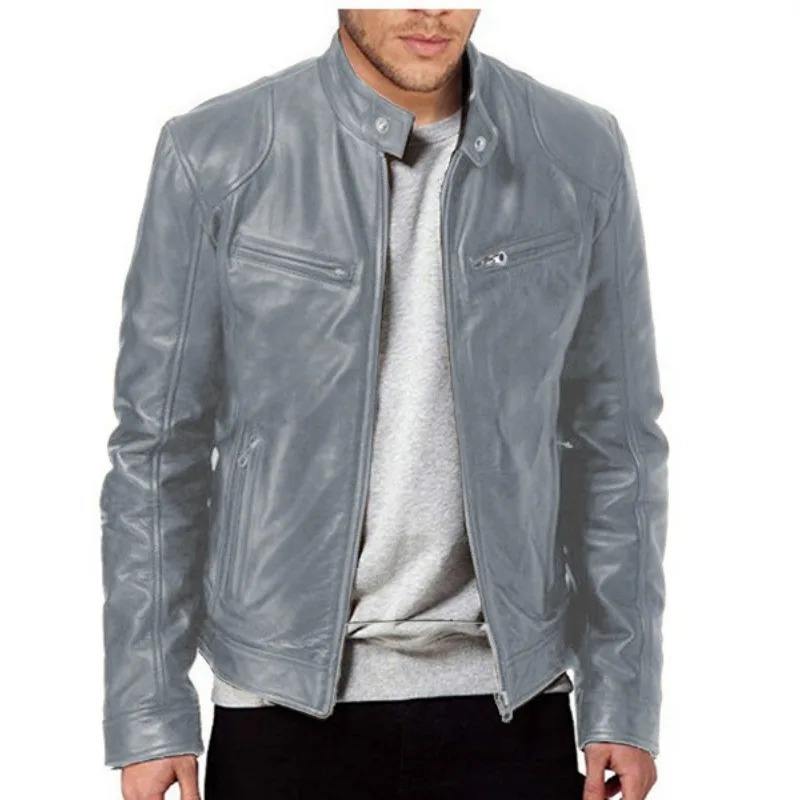 Men's Leather Jacket Autumn Fashion Solid Color Zipper Motorcycle Jacket Men's Casual Long Sleeve Zipper Button jacket for men