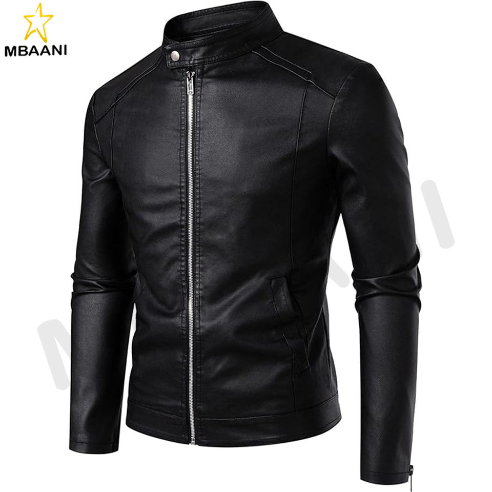 Men's Leather Jacket Faux Leather Motorcycle Jackets Stand Collar Biker Coat Outwear.