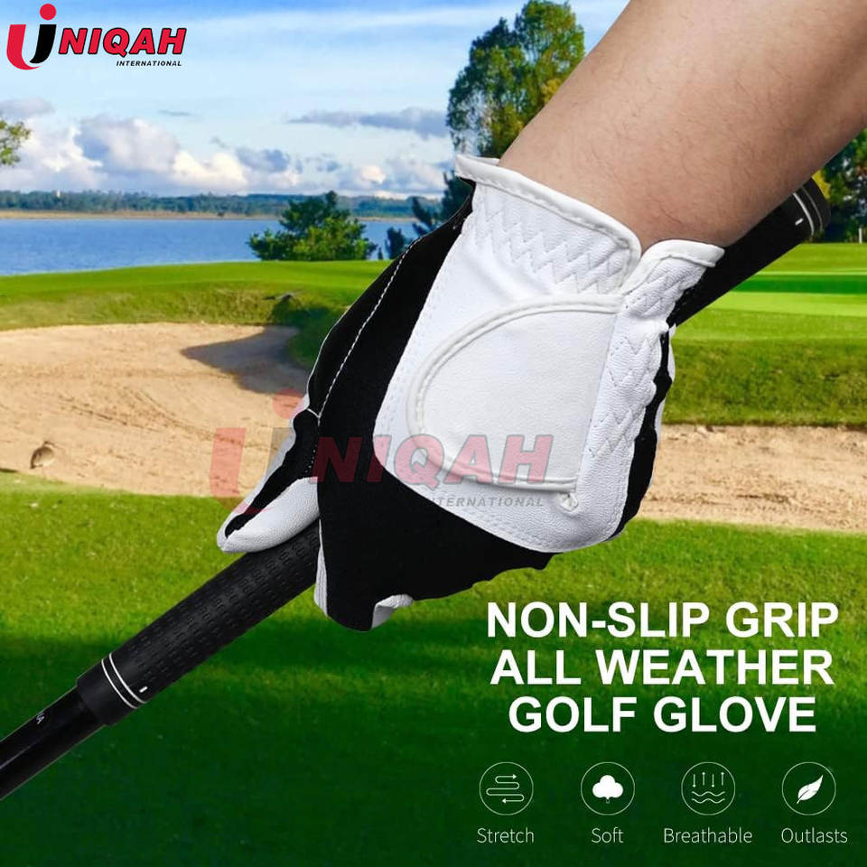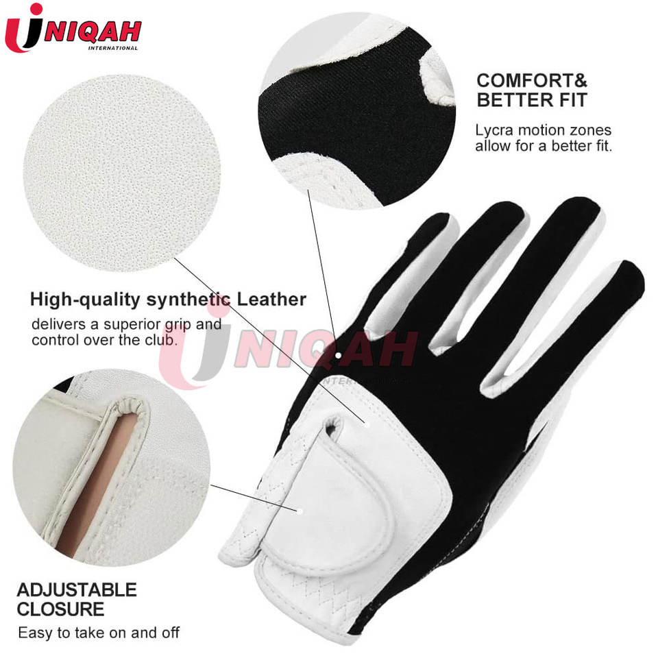 Men's Premium Right-Handed Golf Gloves Adjustable Closure Black White Synthetic Cabretta Leather PU Left Hand Golf Gloves-Sports