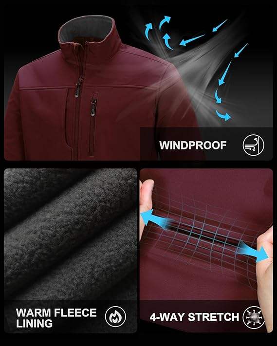 Men's Lightweight Breathable Softshell Jacket Waterproof Windbreaker Warm Fleece Lining for Travel Hiking Golf Motorcycle Racing