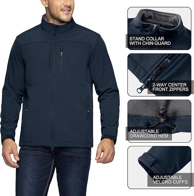 Men's Lightweight Breathable Waterproof Softshell Jacket Warm Fleece Lining Windbreaker for Travel Hiking Golf Motorcycle Racing