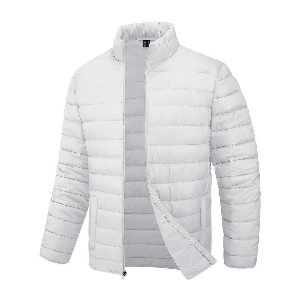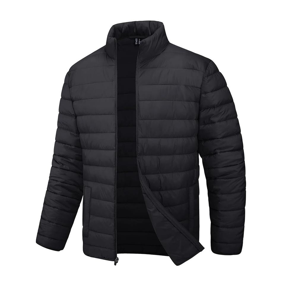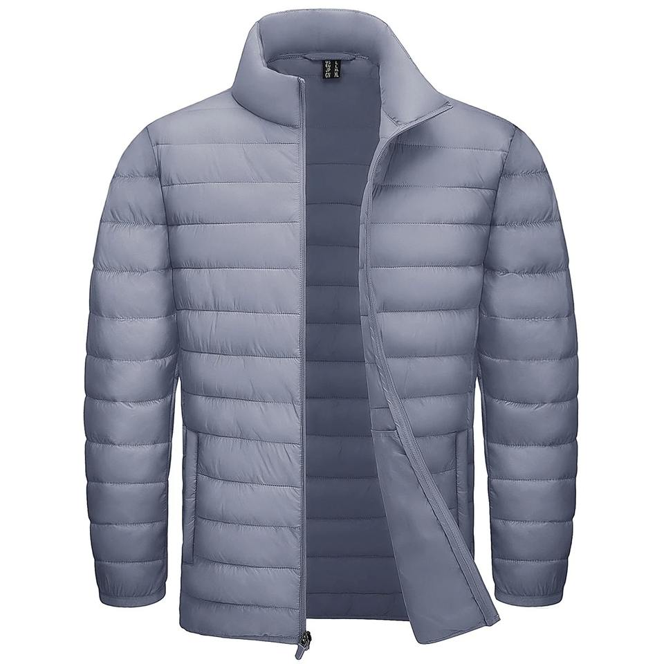Men's Lightweight Denim Puffer Jacket Stand Collar Full Zip Warmth Waterproof Windbreaker for Work Outdoor Casual Knitted Style