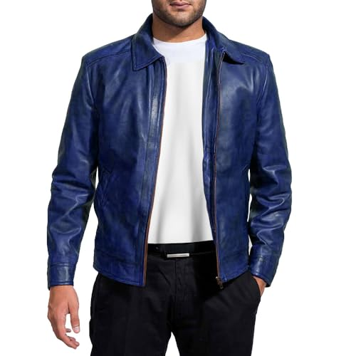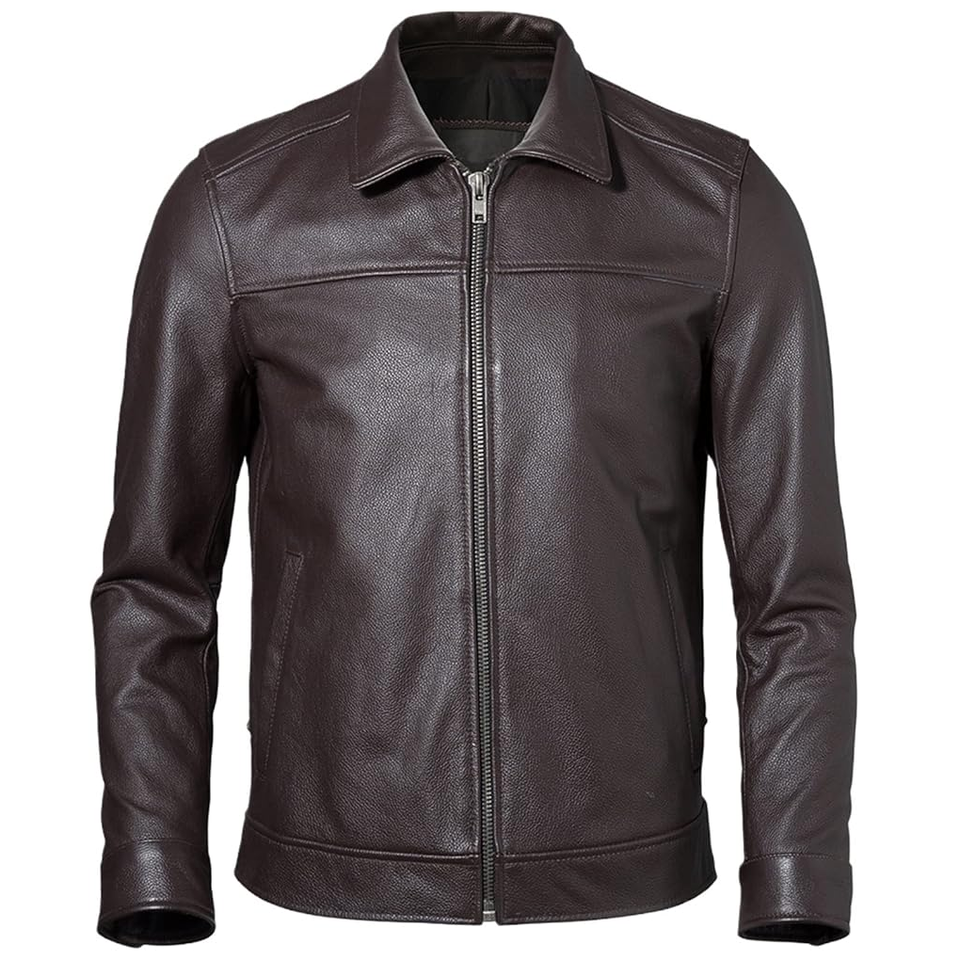 Men's Lightweight Leather Jacket Male Leather Jacket Men Casual Slim Fit Pocket Leather Coat
