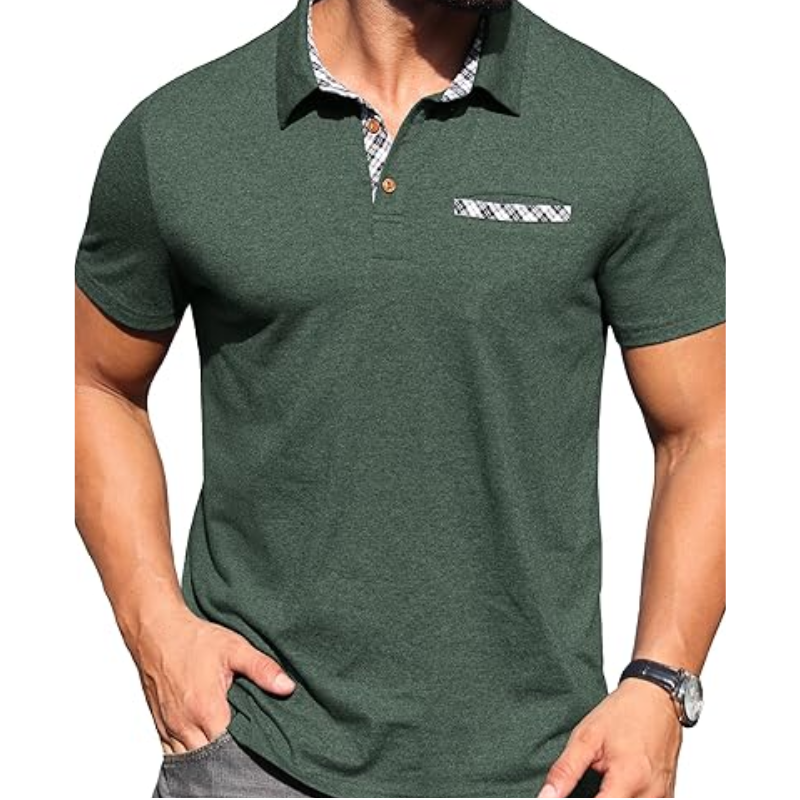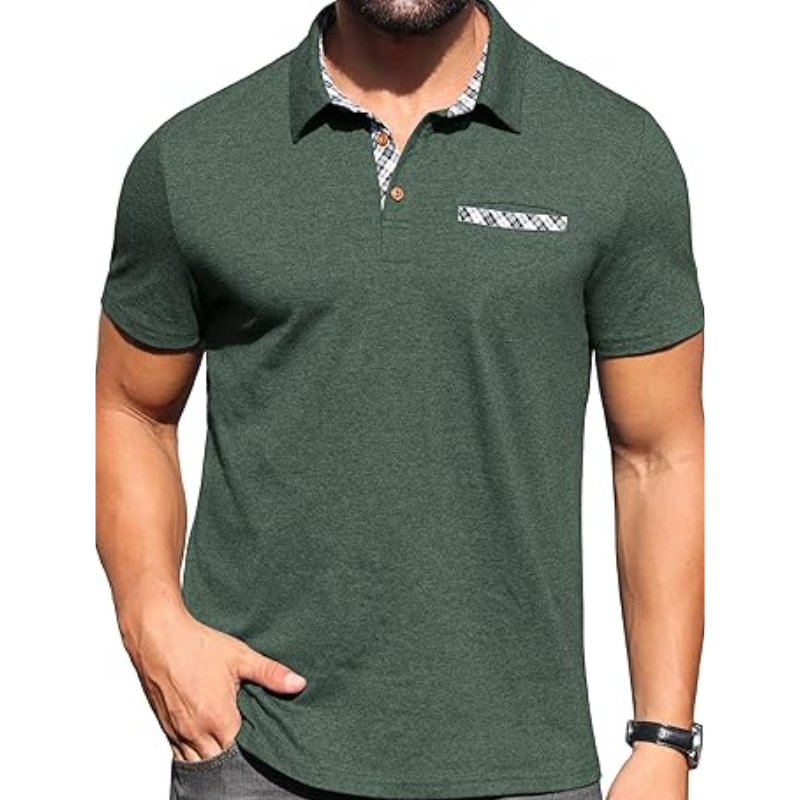 Men's Lightweight Polo Shirt Short Sleeve Casual Cotton Summer Button Golf Tee with Pocket