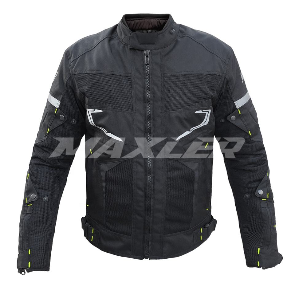Men's Lightweight Summer Motorbike Jacket CE Approved Breathable Mesh Panels Detachable Waterproof Lining Stand Collar Pattern