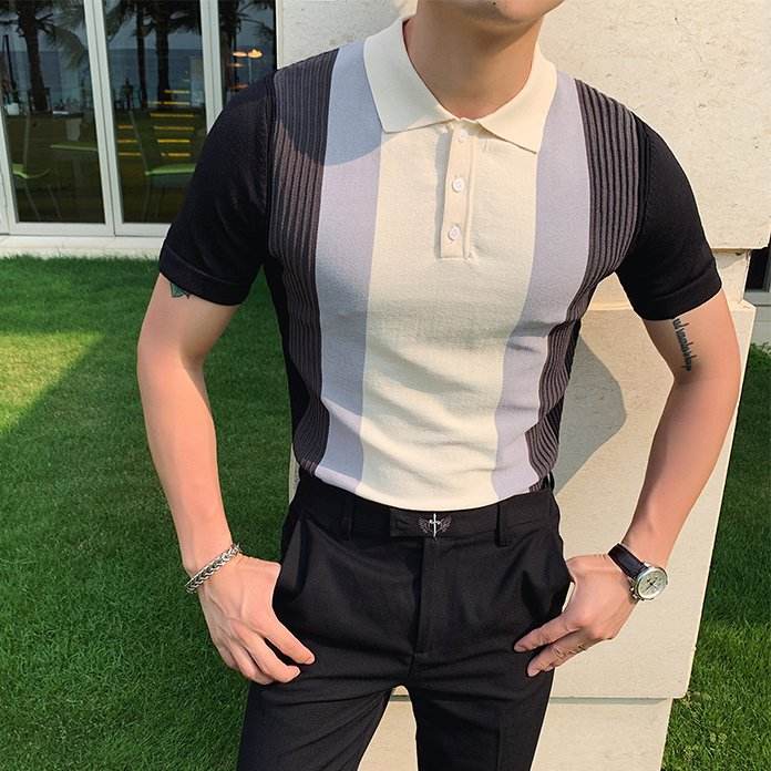 Men's Lightweight Vertical-Stripe Polo Shirt - Season: Spring, Fall/Autumn, Summer - Casual Style Polo Shirt