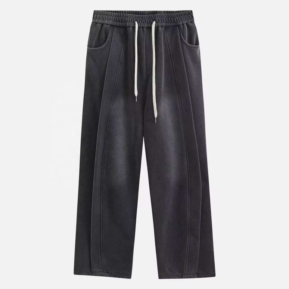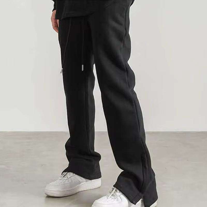 Men's Lightweight Warm Fleece Wide Leg Sweat Pants Plus Size Flare Full Length Trousers Washed Plain for Men and Women