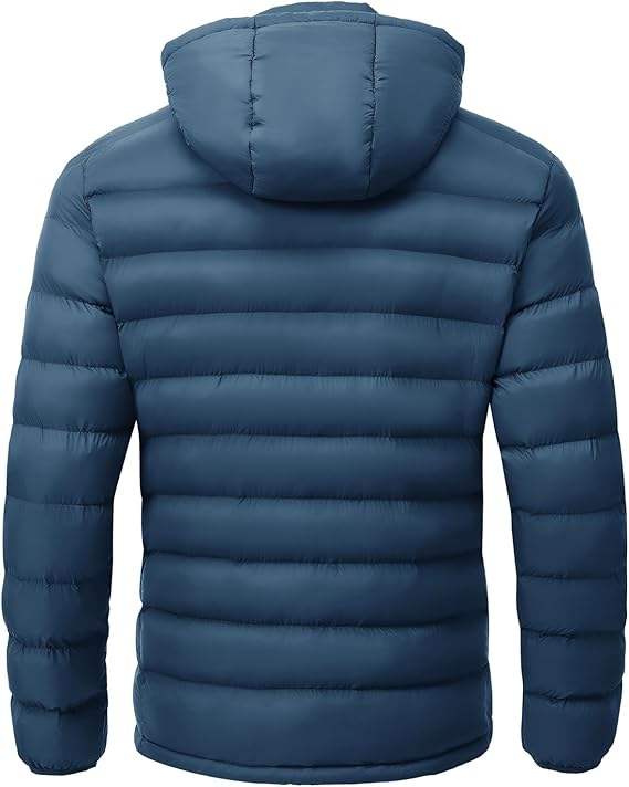 Men's Lightweight Water-Resistant Hooded Puffer Jacket Insulated Winter Coat with Detachable Hood for Snow Ski.
