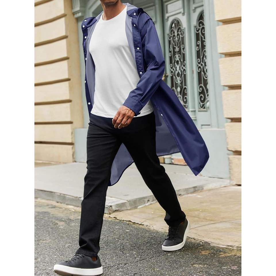 Men's Lightweight Waterproof Windbreaker Trench Coat with Hood for Outdoor Active Rain Jacket