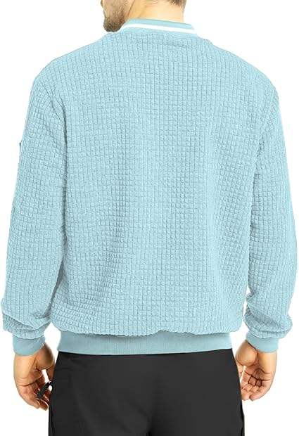 Men's Lightweight Winter Light Blue Canvas Bomber Jacket Wholesale Casual Adjustable Comfort Side Pockets Front Zip Elastic