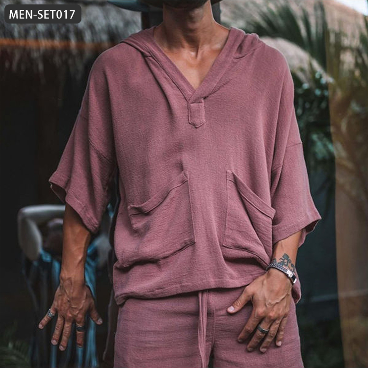 Men's Linen Cotton Loose Fit Harajuku Set - Summer Short Sleeve Shirt & Pants Casual Vacation Suit