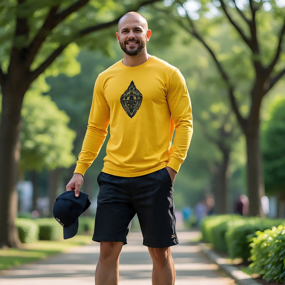 Men's Long Sleeve 100% Cotton Polyester T-Shirt Custom Print Workout Fitness Wear Breathable Oversize Tee Stand Horn Button