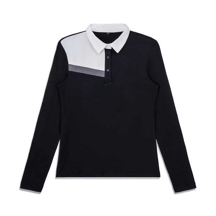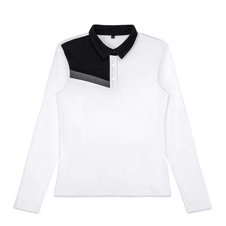 Men's Long-Sleeve Asymmetrical Color-Block Polo Shirt 2026 Smart-Casual Tailored Fit Black & White Contrast Professional Top