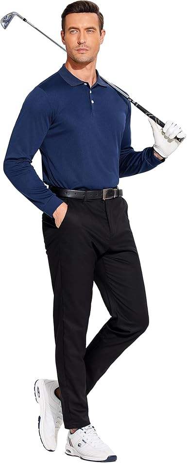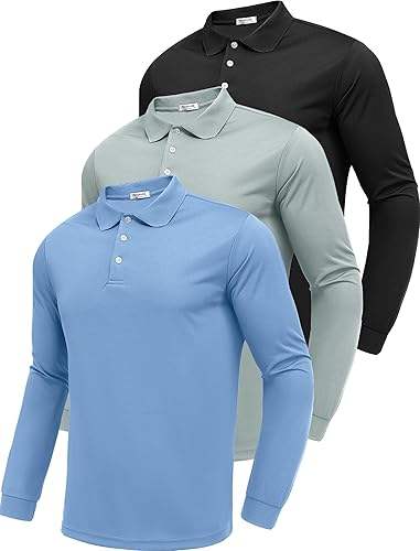 Men's Long Sleeve Polo Shirts Moisture Wicking Golf Shirts Quick Dry Work Hiking Casual Collared Shirt