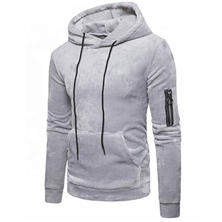 Men's Long Sleeve Pullover Winter Sweatshirt Soft Fleece Velvet Hoodie Zipper Pocket Embroidered Plain Dyed Warm Streetwear