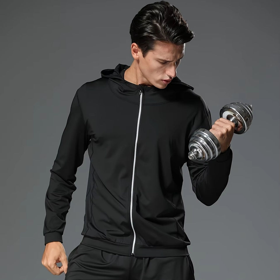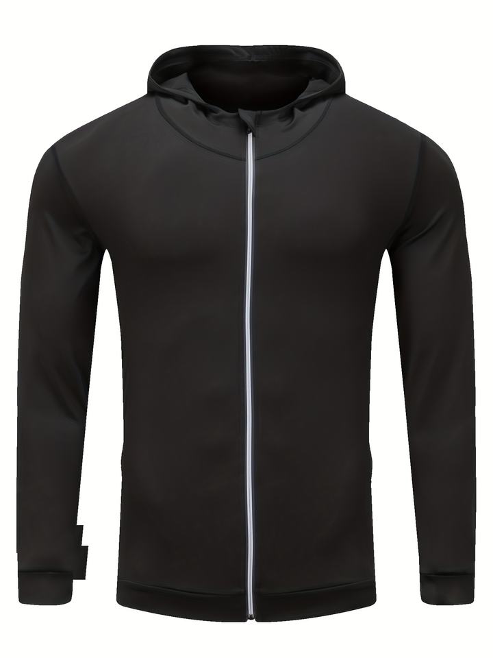 Men's Long-Sleeved Hooded Running Jacket Full-Zipper Elastic Full-Zipper Hooded Sweatshirt for Outdoor Sports Cycling Dyed