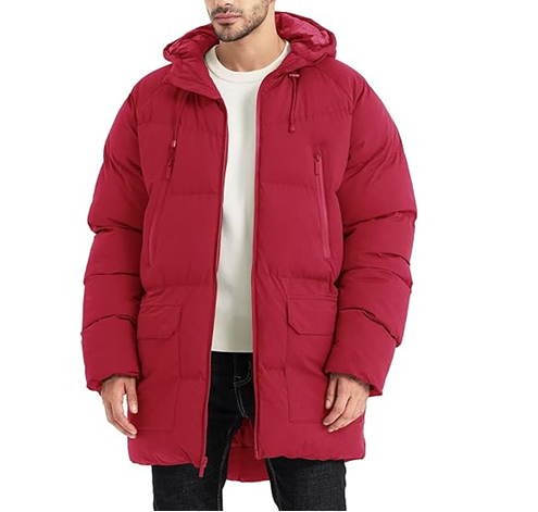 Men's Long Winter Coat Hooded Warm Quilted Jacket Water-resistant Cold Weather Parka