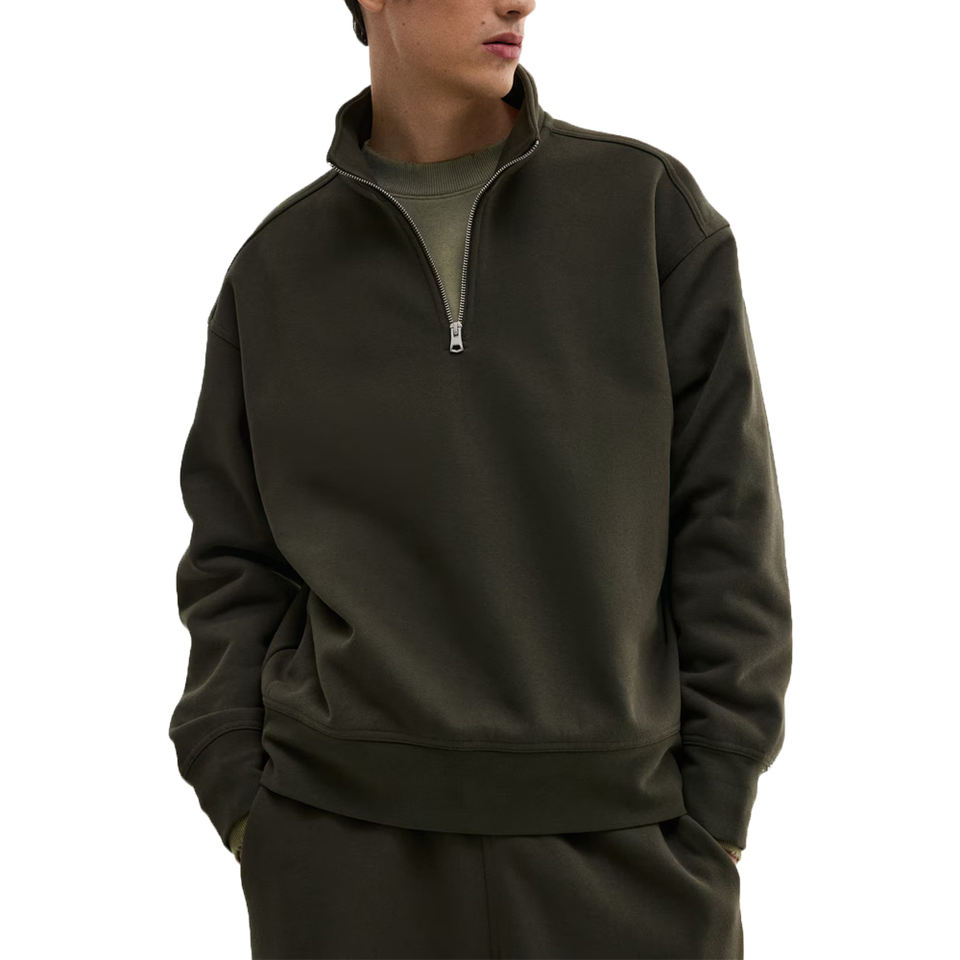 Men's Loose Fit Half Zip Sweatshirt Blank Crew Neck High Quality Fleece Blank Plain Custom Embroidery Boy's Sweatshirt OEM