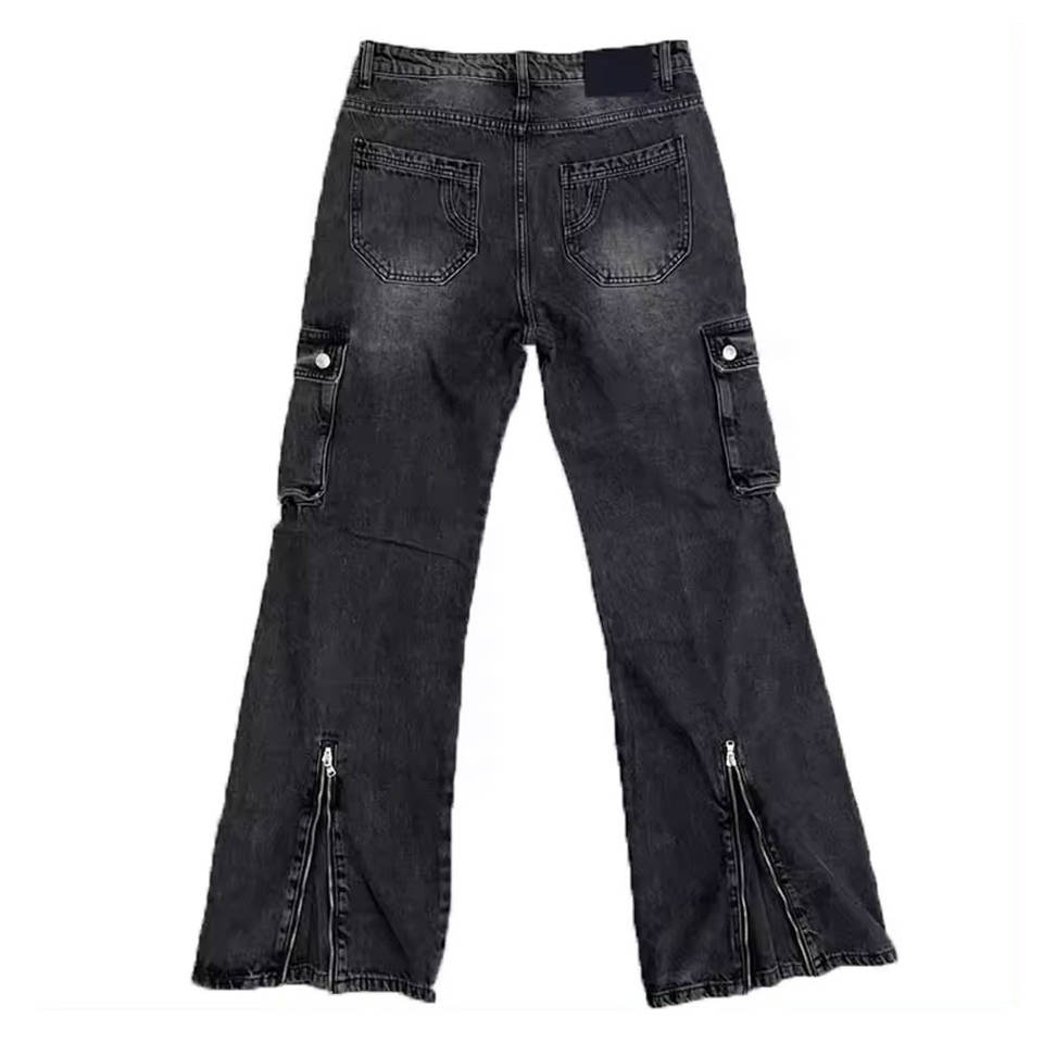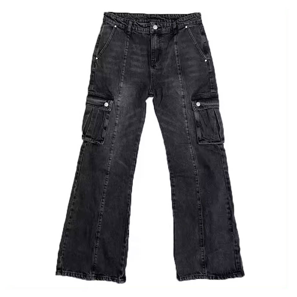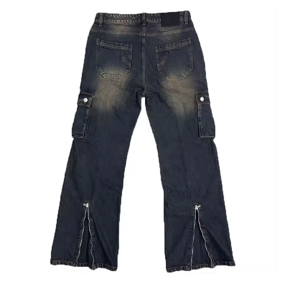 Men's Loose Straight Baggy Hip Hop Streetwear Jeans Wide Leg Denim Cargo Pant with Waterproof Coated Fabric