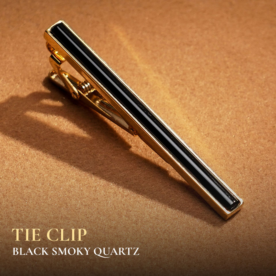 Men's Luxury 18K Gold-Plated Tie Clip with Fengshui Smoky Quartz Gemstone | Tinh Vu Collection | KCVDADE002 | Made in Vietnam