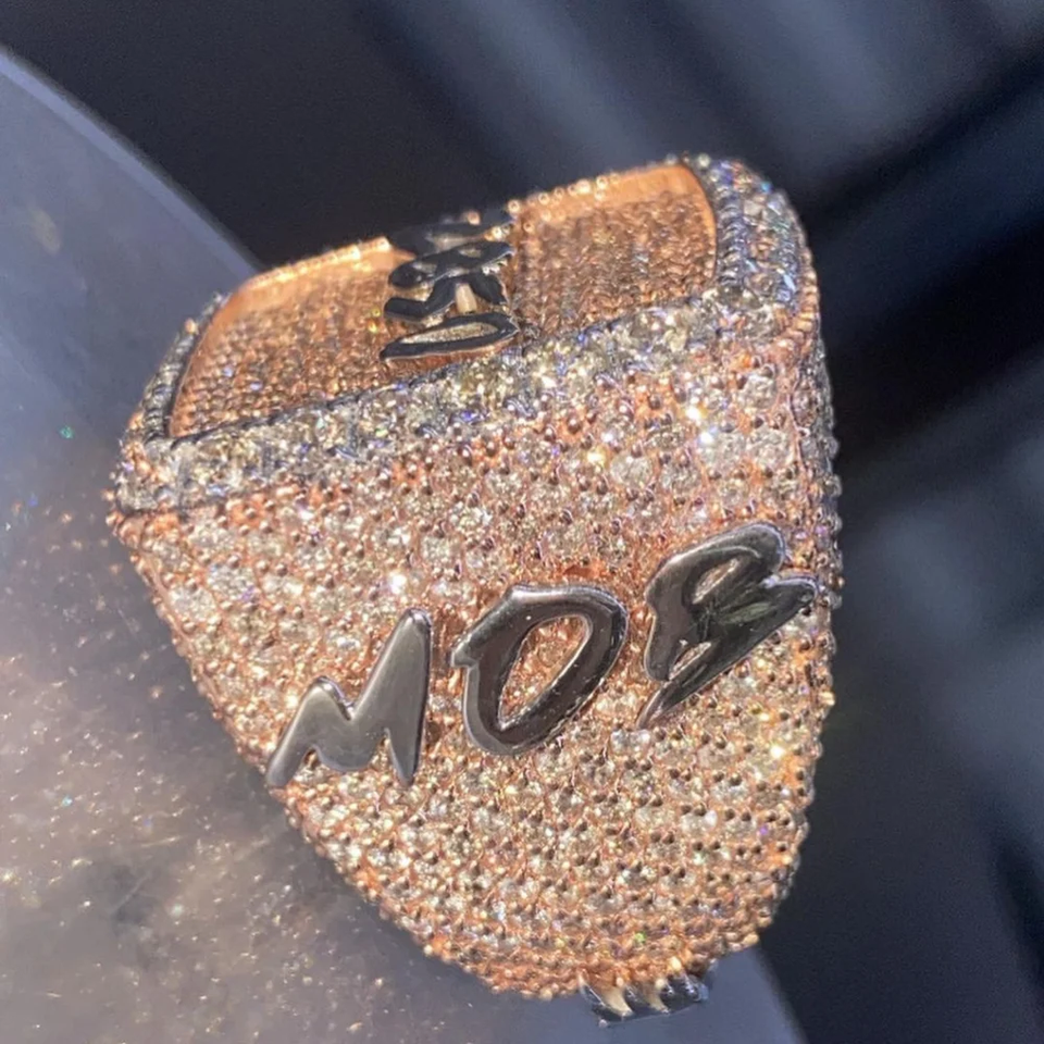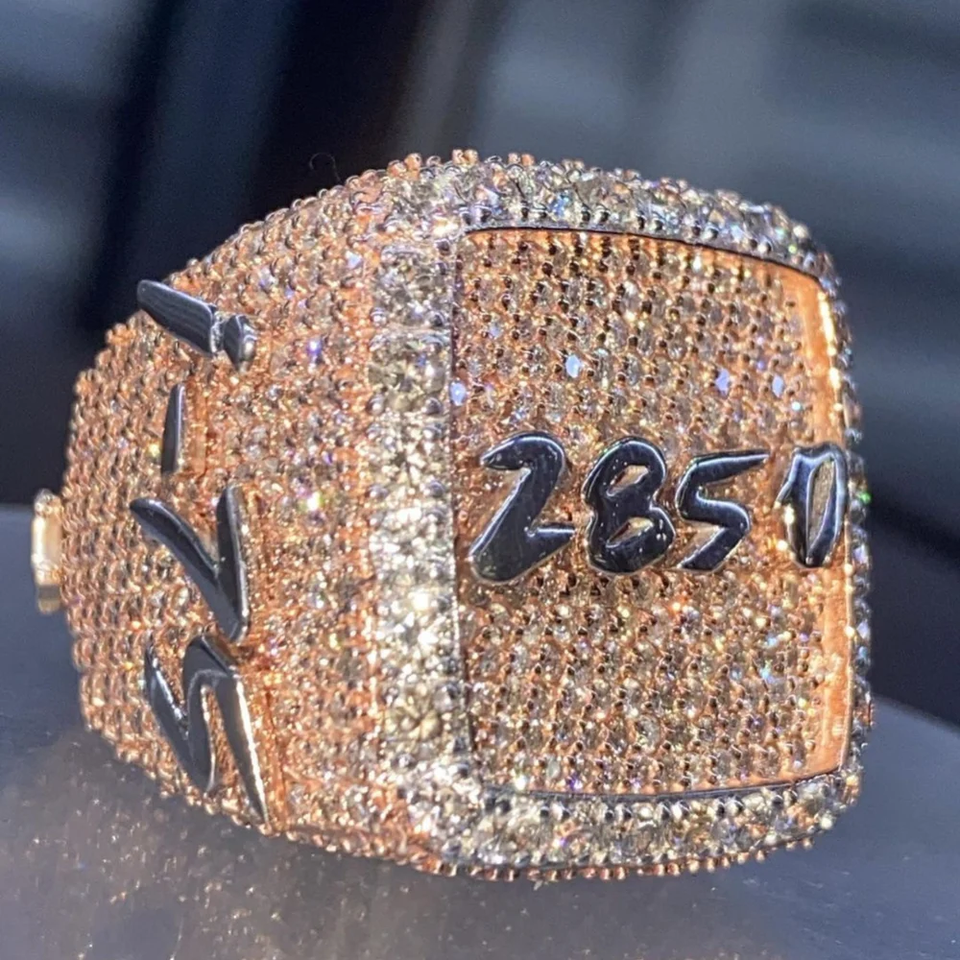 Men's Luxury 925 Silver Ring Trendy Hip Hop Style VVS Lab Grown Ice Full Diamond 10K 14K 18K Gold Rounded Alphabet Ring Costume