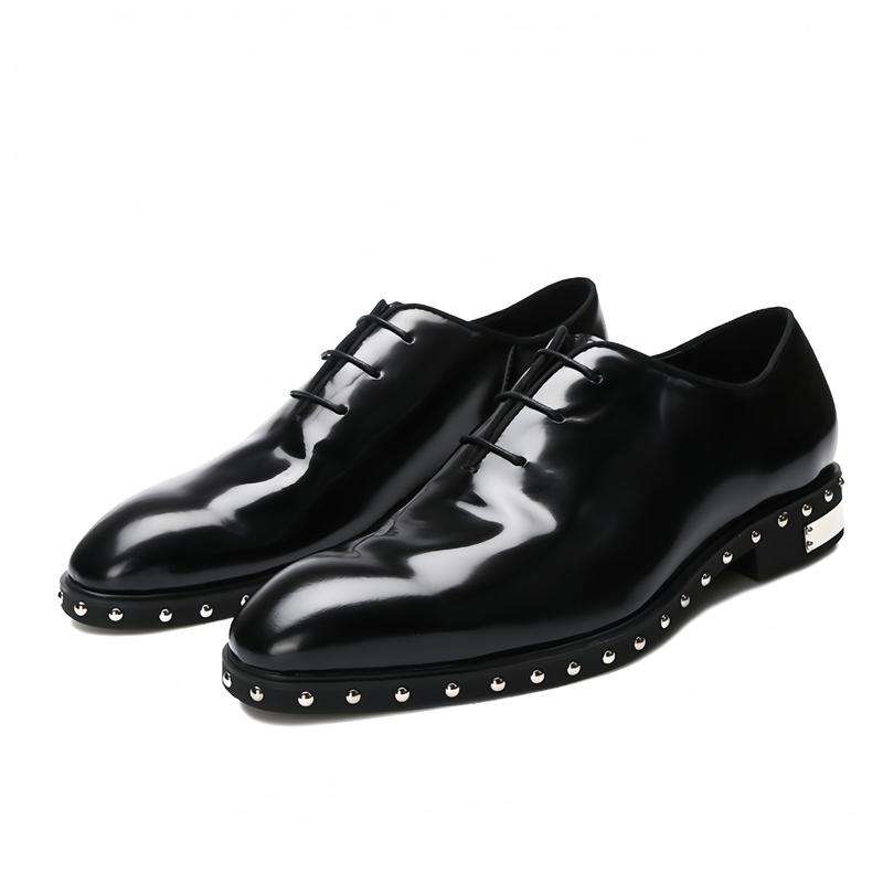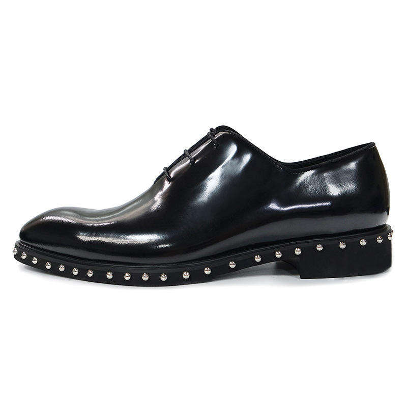 Men's Luxury Autumn Black Rivet Decorated Genuine Leather Round Toe Formal Dress Shoes Wholesale Manufacturer