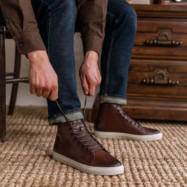 Men's Luxury Comfortable Everyday High Top Sneakers Walking Style Daily Use EVA Insole for Men More Comfortable Stylish Sneakers