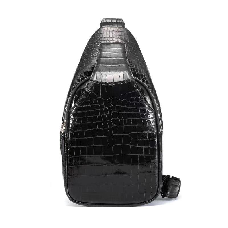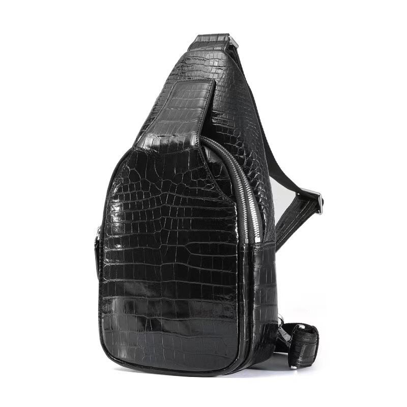 Men's Luxury Crocodile Skin Chest Bag Genuine Leather Cowhide Lining Waterproof Portable Durable Casual Sling Backpack for