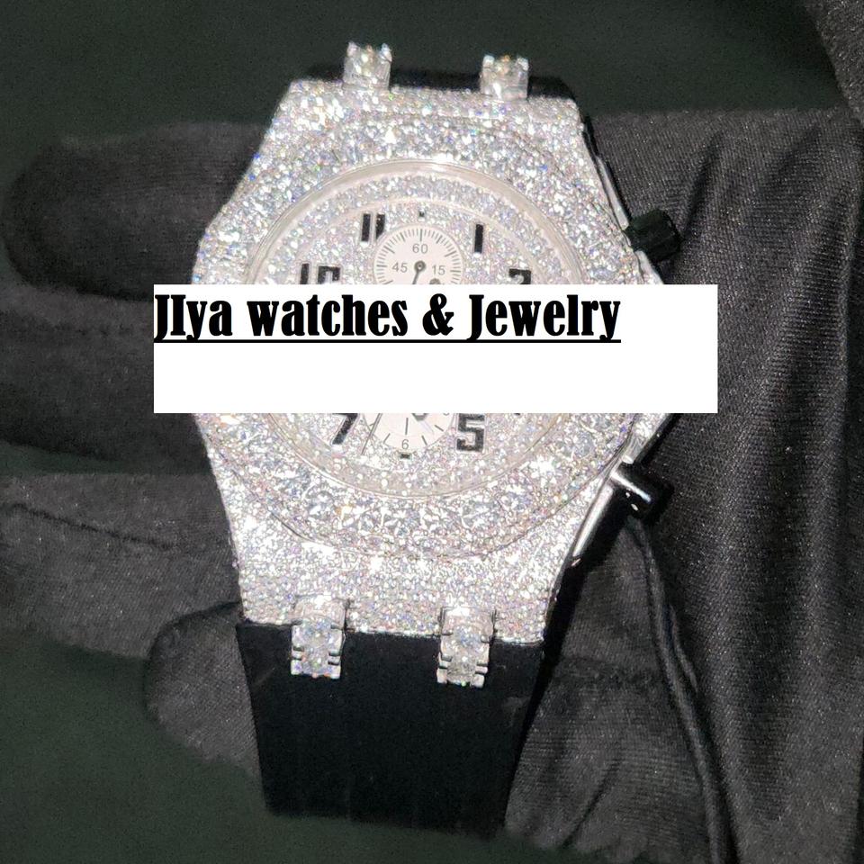 Men's Luxury Fashion Square Dial Mixed Scale Glass Window Moissanite Diamond Alloy Rubber Band MIYOTA Automatic Watch