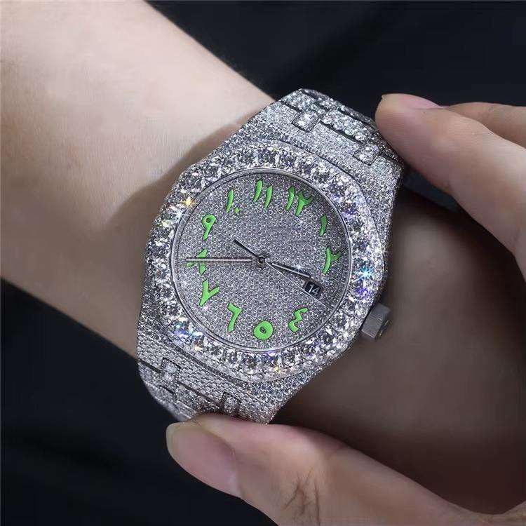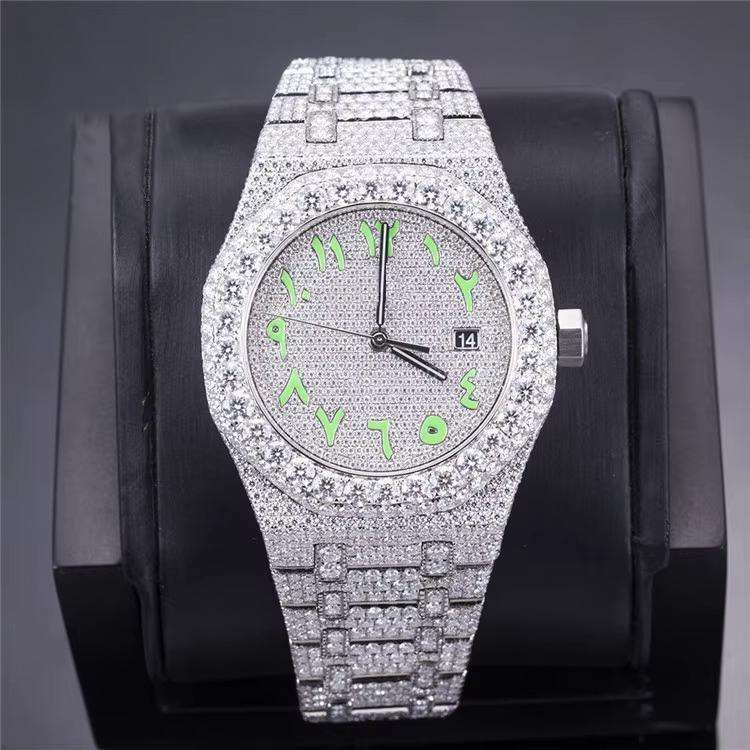 Men's Luxury Fully Iced Out Moissanite Diamond Watch with VVS Dial Display Diamond Tester Check