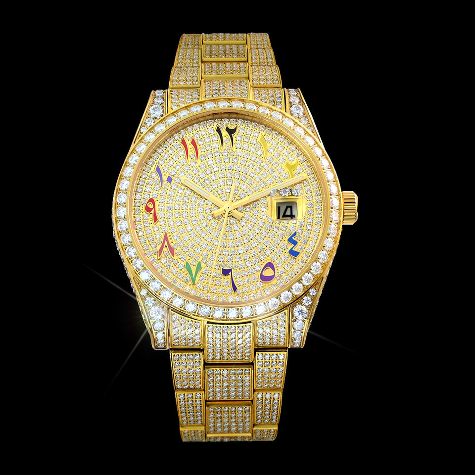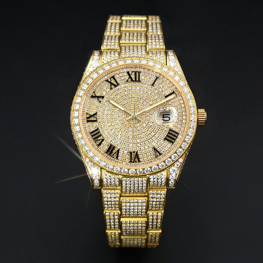 Men's Luxury Gold Iced Out Hip Hop Automatic Mechanical Watch Real Diamond VVS Moissanite Gold Bust Down Wristwatch