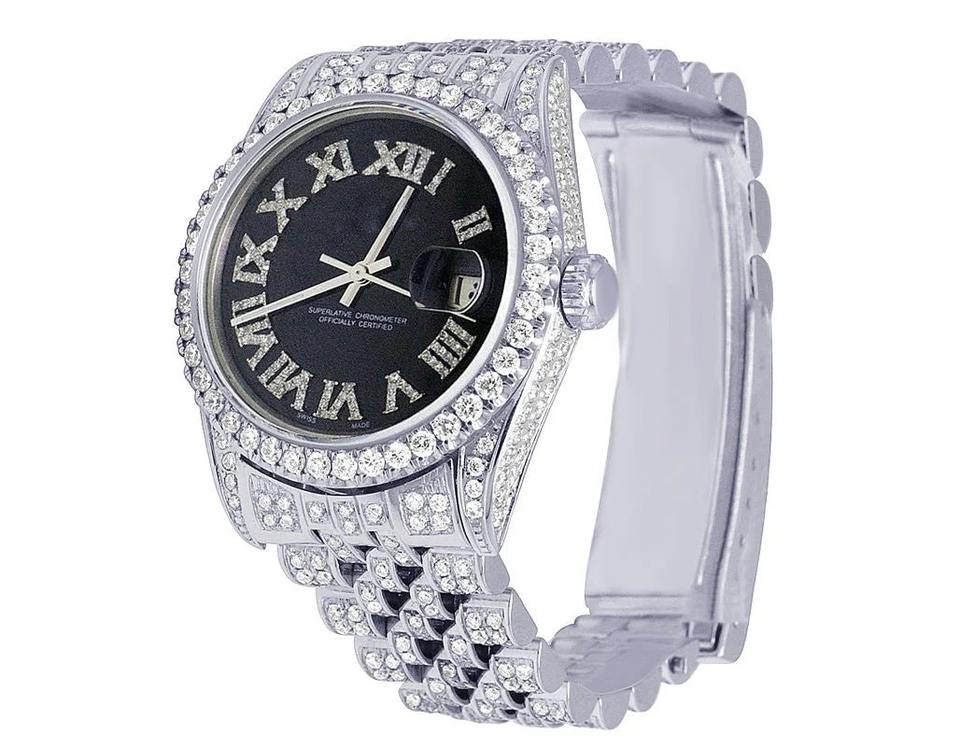 Men's Luxury Hip Hop 925 Sterling Silver Plated Watch Fully Iced Moissanite Diamond Quartz Movement Glass Dial for Business Use