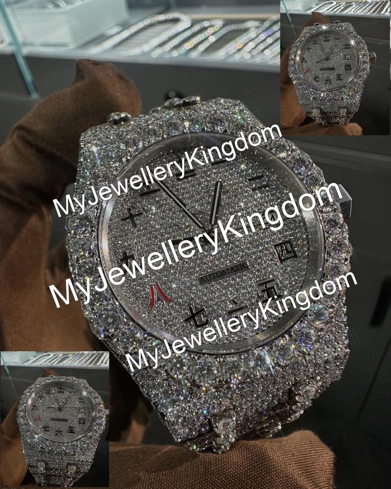 Men's Luxury Sport Watch Custom Logo 41mm Stainless Steel Case Moissanite Band Arabic Dial ETA Movement 10 Bar Water Resistance
