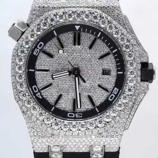Men's Luxury Wrist Watch with Unique LAB Diamond Round Dial Fancy Black Silicone Band Mechanical ETA Movement Rectangle Case
