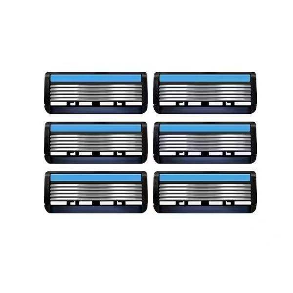 Men's Manual Razor 6 Blade Stainless Steel Razor Head For Face Shaving Obsidian Black