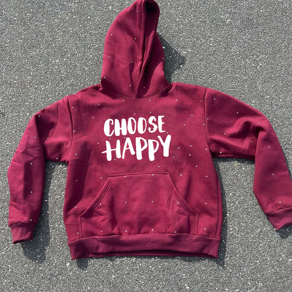 Men's Maroon Full Sleeve Street Wear Winter Hoodie 100% Cotton Fleece with Rhinestone Detail