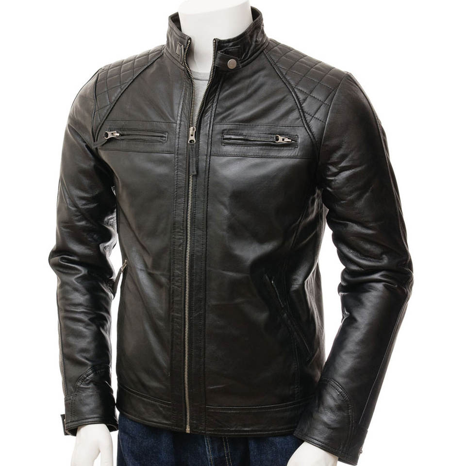 Men's Medium Black Genuine Leather Jacket New Style Custom Motorcycle Design for Street Wear Stand Collar-Casual & Formal