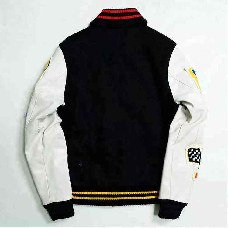 Men's Melton Wool Varsity Jacket with Leather Sleeves Patchwork Design Stand Collar-Windproof & Waterproof Wholesale