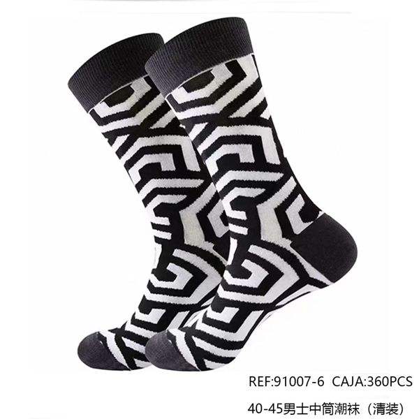 Men's Mid-Calf Socks 40-45 Black White Geometric Pattern Fashion Socks