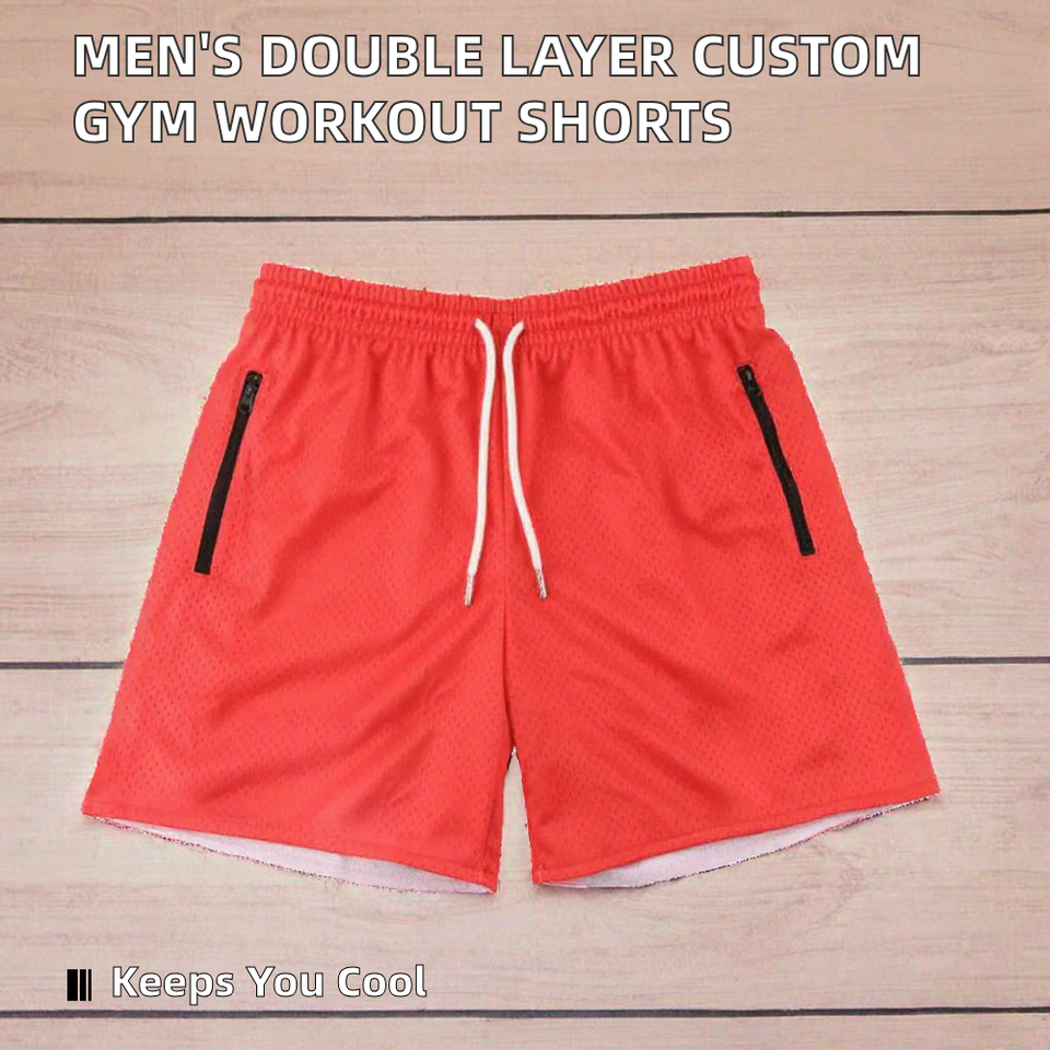 Men's Mid Double Layer Customized Breathable Cotton Sports Fitness Gym Shorts Solid Pattern High Street Style OEM Service