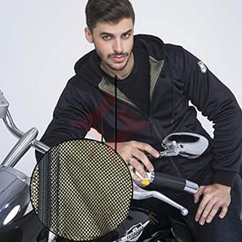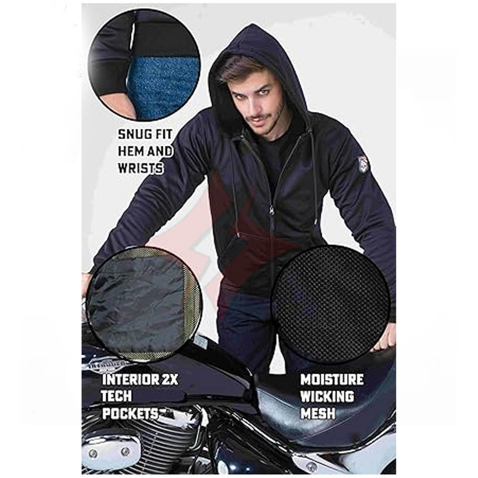 Unisex Motorcycle Hoodie Fully Aramid Lined CE Level 2 Armored Zip-Up Jacket Reinforced Biker Removable Breathable