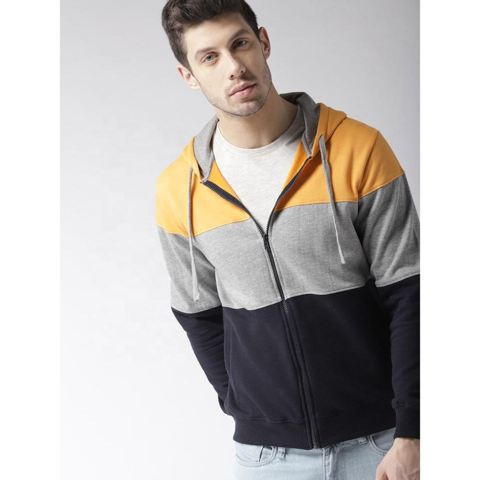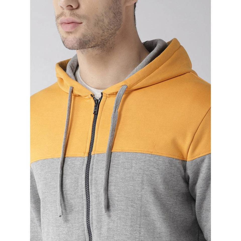 Men's Mustard Yellow & Navy Colorblocked Hooded Sweatshirt 100% Cotton Material