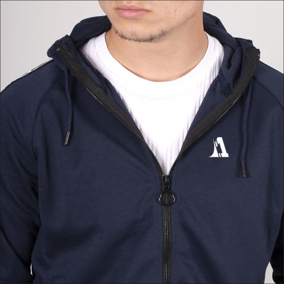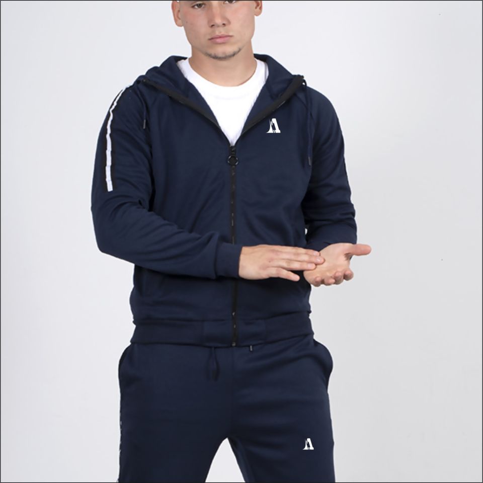Men's Navy Blue Cotton Fleece Tracksuit Sets Stylish Two-Piece Zip Up Jacket and Jogger Pants for Casual Wear Sports and Fashion